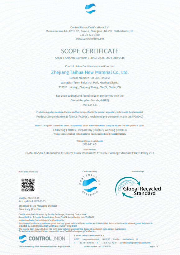臺(tái)華新材GRS認(rèn)證
