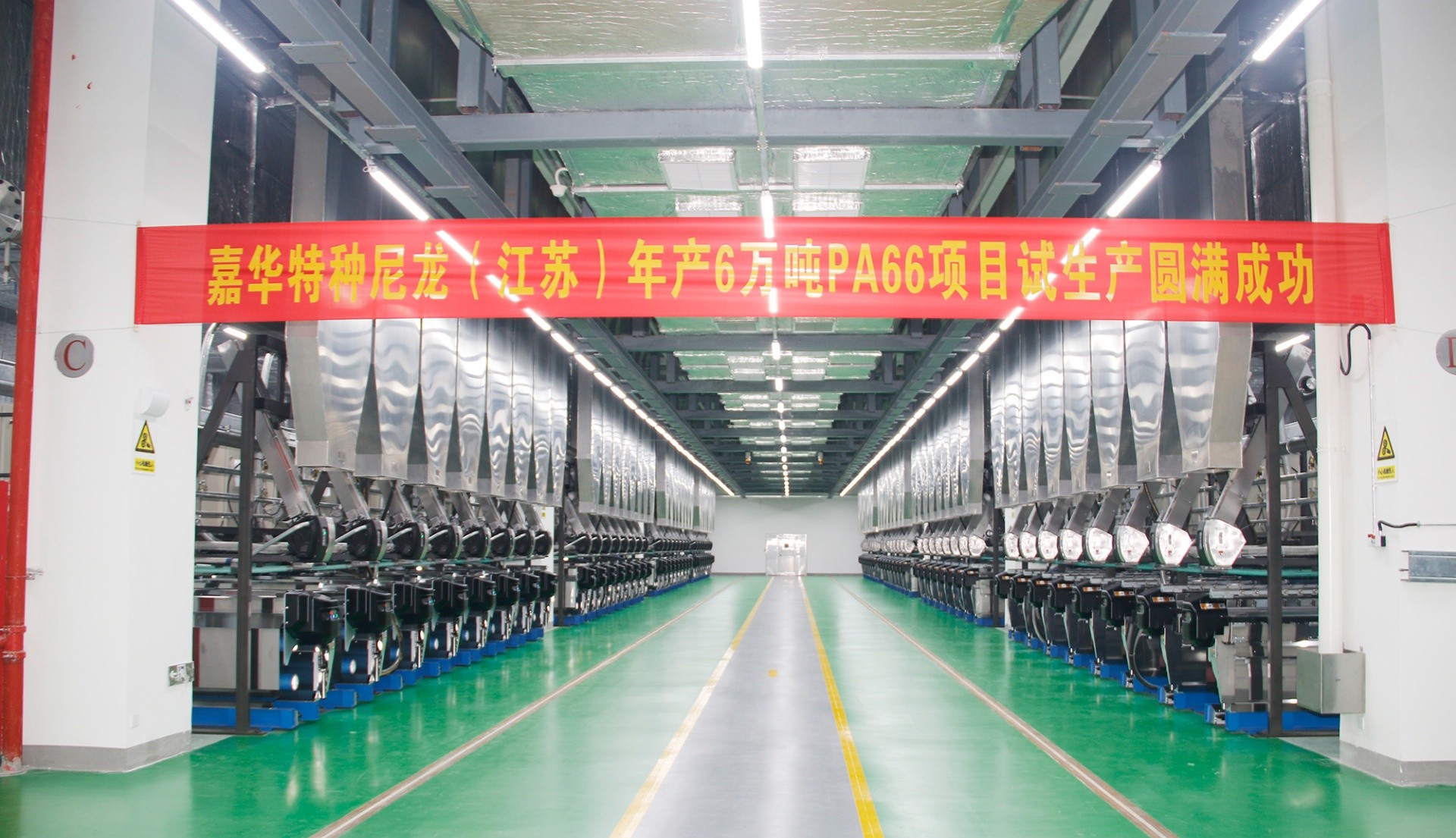 2023年4月24日9點18分,臺華新材子公司嘉華特種尼龍(江蘇)有限公司年產(chǎn)6萬噸PA66項目試車一次成功。