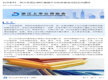 查看詳情臺華新材上榜“2024年度浙江轄區(qū)回報投資者 優(yōu)秀實踐案例”名單