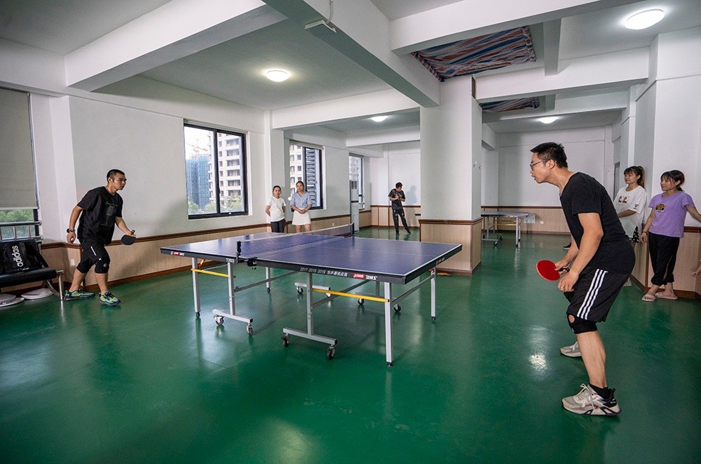 公司自建生活小區(qū),員工宿舍有套房(兩室一廳)、單人間以及集體宿舍等不同房型,房間內(nèi)設(shè)空調(diào)、熱水淋浴、衣柜、床鋪等設(shè)施,滿足員工基本需求。生活小區(qū)還提供閱覽室、籃球場、臺球室等,并緊鄰王店梅北公園,給臺華家人們提供不同的休閑方式。